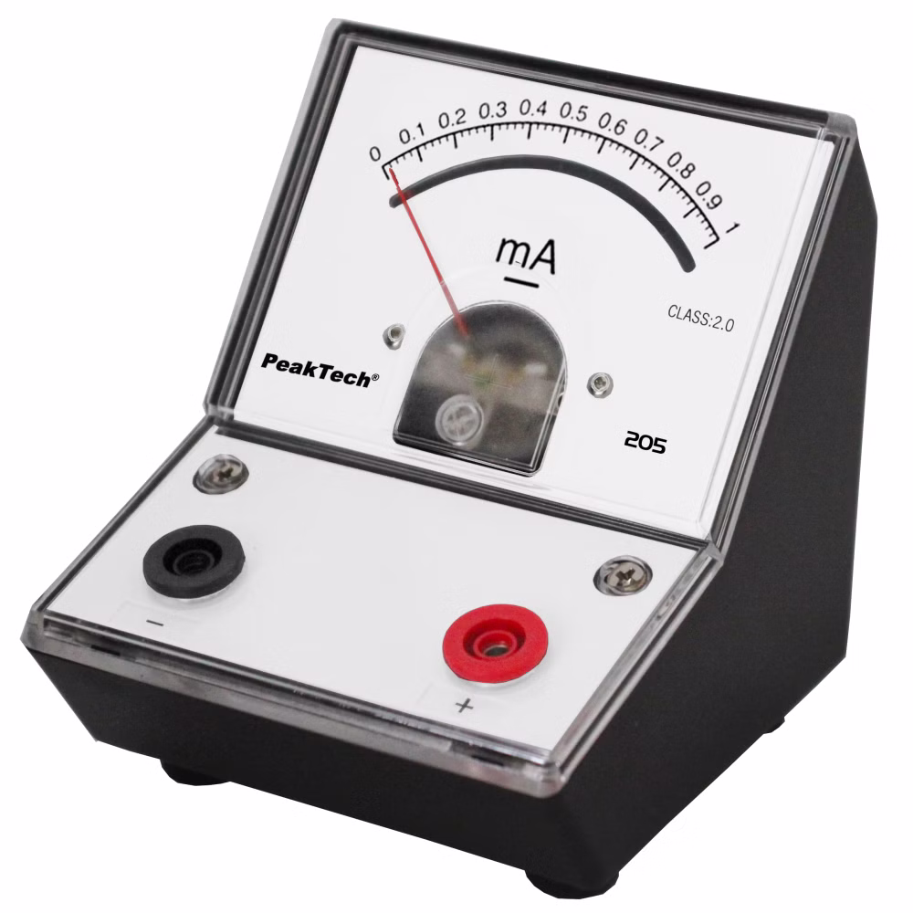 Bei unseren P 205 Modellen handelt es sich um eine Serie praktischer und robuster Analogmessgeräte speziell für Schülerversuche. Diese preiswerten Geräte sind für den Einsatz als Pultgeräte / Tischgeräte ausgelegt und verfügen über Drehspulmesswerke, Spiegelskalen und Sicherheitsbuchsen in 4mm Technik. Desweiteren benötigen diese Analoggeräte keine Spannungsversorgung, wodurch sie dauerhaft und kostensparend einsetzbar sind. Auf der großen Analog-Spiegelskala können die jeweiligen Messwerte durch den Schüler oder Stundenten bequem abgelesen werden. Es steht eine Vielzahl an Modellen mit verschiedensten Funktionen und Messbereichen zur Verfügung.