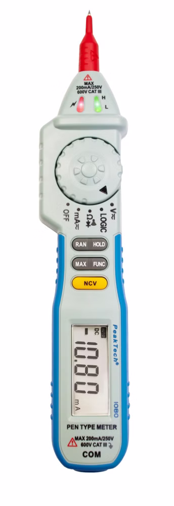Bei diesem Pen-Type-Multimeter handelt es sich um eine Neuentwicklung entsprechend den aktuellen Sicherheitsanforderungen. Desweiteren verfügt dieses Gerät über eine gut lesbare LCD-Anzeige und der Drehschalter ermöglicht eine bequeme Einhandbedienung zur Auswahl der Messfunktionen und schnelle Messergebnisse.
