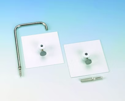 Metallplatten mit Steckbügeln zur Durchführung von Ionisations-und Dosimetrieexperimenten.