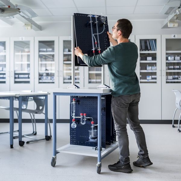 Funktion und Verwendung Die Rückwand für Komplettversuche dient als rückseitige Abdeckung der Platte für Komplettversuche (45510-00) und wird in dafür vorgesehene Halter am Rahmen für Komplettversuche (45500-00) eingehängt. Sie verhindert einen eventuellen Lichteinfall von hinten auf die Platte, der bei Betrachtung der Versuchsaufbauten stören würde. Ohne die Rückwand würde dieses Licht durch die nicht genutzten Löcher des Lochrasters der Platte für Komplettversuche nach vorne strahlen. Die Rückwand wird für jeden Rahmen für Komplettversuche nur einmalig benötigt, da sie selbst bei dem Wechsel eines Versuchsaufbaus auf einer Platte für Komplettversuche auf dem Rahmen hängen bleibt. Wie die Platte für Komplettversuche kann auch die Rückwand sowohl hochkant als auch quer am Rahmen befestigt werden. Vorteile