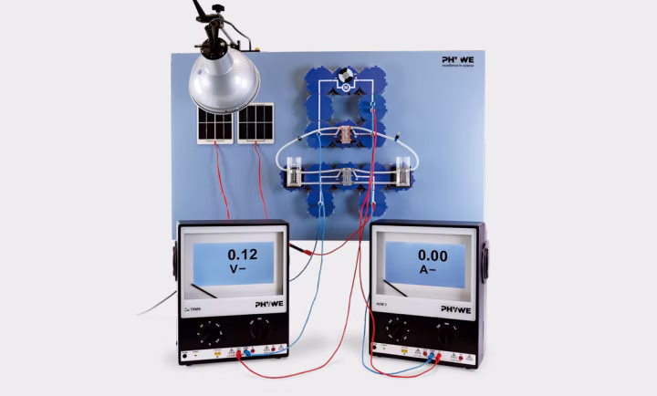 Um die bei der Elektrolyse entstehenden Gase nutzen zu können wird eine Brennstoffzelle benötigt. Diese erzeugt bei Zuführung der beiden Gase eine Spannung und aus den Gasen entsteht wieder Wasser.Im ersten Versuchsteil soll qualitativ untersucht werden, wie sich ein Motor mit der Solar-Wasserstoff-Anlage betreiben lässt und ob die in der Luft enthaltenen Gase dazu genügen. Im zweiten Versuchsteil erfolgt eine quantitative Untersuchung der Anlage.